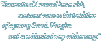 The daughter of two classical singers and the granddaughter of a Broadway star, Jeannette has been immersed in music as long as she can remember. Formerly soloist for Cirque du Soleils Mystère in Las Vegas, she is known to Seattle audiences as a cabaret singer and member of 5th Avenue Theatres popular women's trio, The Daffodils. She recorded Stage Road in New York and co-produced it with Manhattan Transfer founder Laurel Massé and arranger/pianist Hubert Tex Arnold. The recording includes songs by Bob Dorough, Alec Wilder, Jackie Gleason, Stephen Sondheim, Rupert Holmes, and Joni Mitchell. |